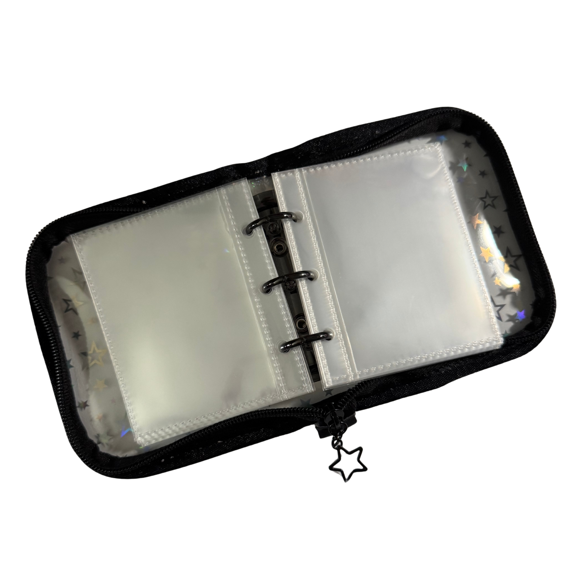 - Features matching star zipper and loop on top of binder to add a charm