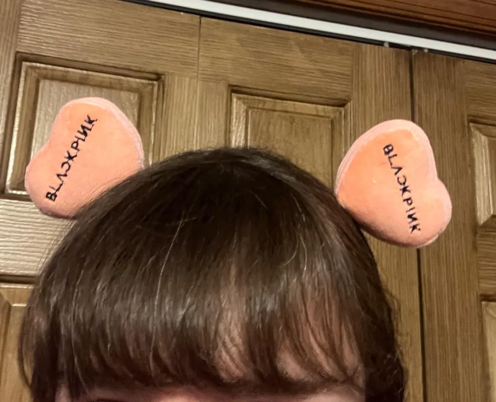 Headband features two cute 3D stuffed hearts facing with the BLACKPINK logo.
